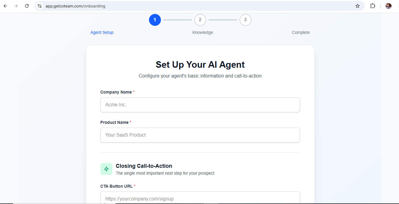 CoTeam starts the sales conversation the moment intent appears.